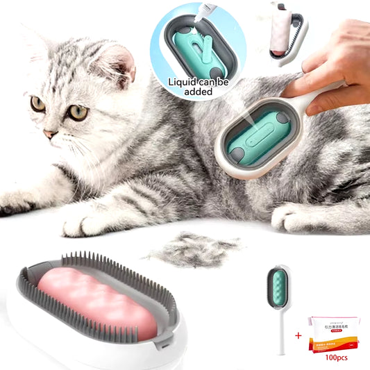 Pet Grooming Comb Cat Brush Long Hair Remover Brush for Dog Cat Silicone Wipe and Water Tank Pet Product Accessories